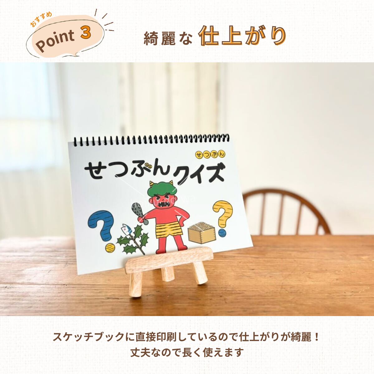 簡単に使えるスケッチブックシアターで、子どもたちと一緒に節分クイズで楽しく盛り上がりましょう。