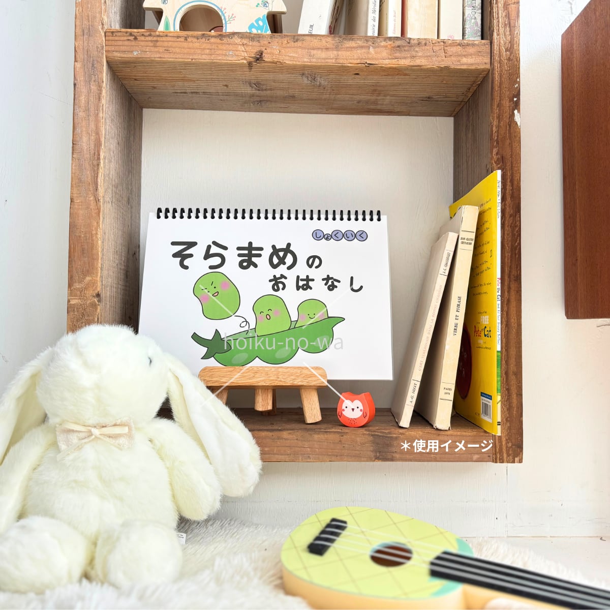 子どもたちにそら豆の成長を楽しく伝え、実際のそら豆に触れる前の導入として活用できる便利なスケッチブックシアターです。