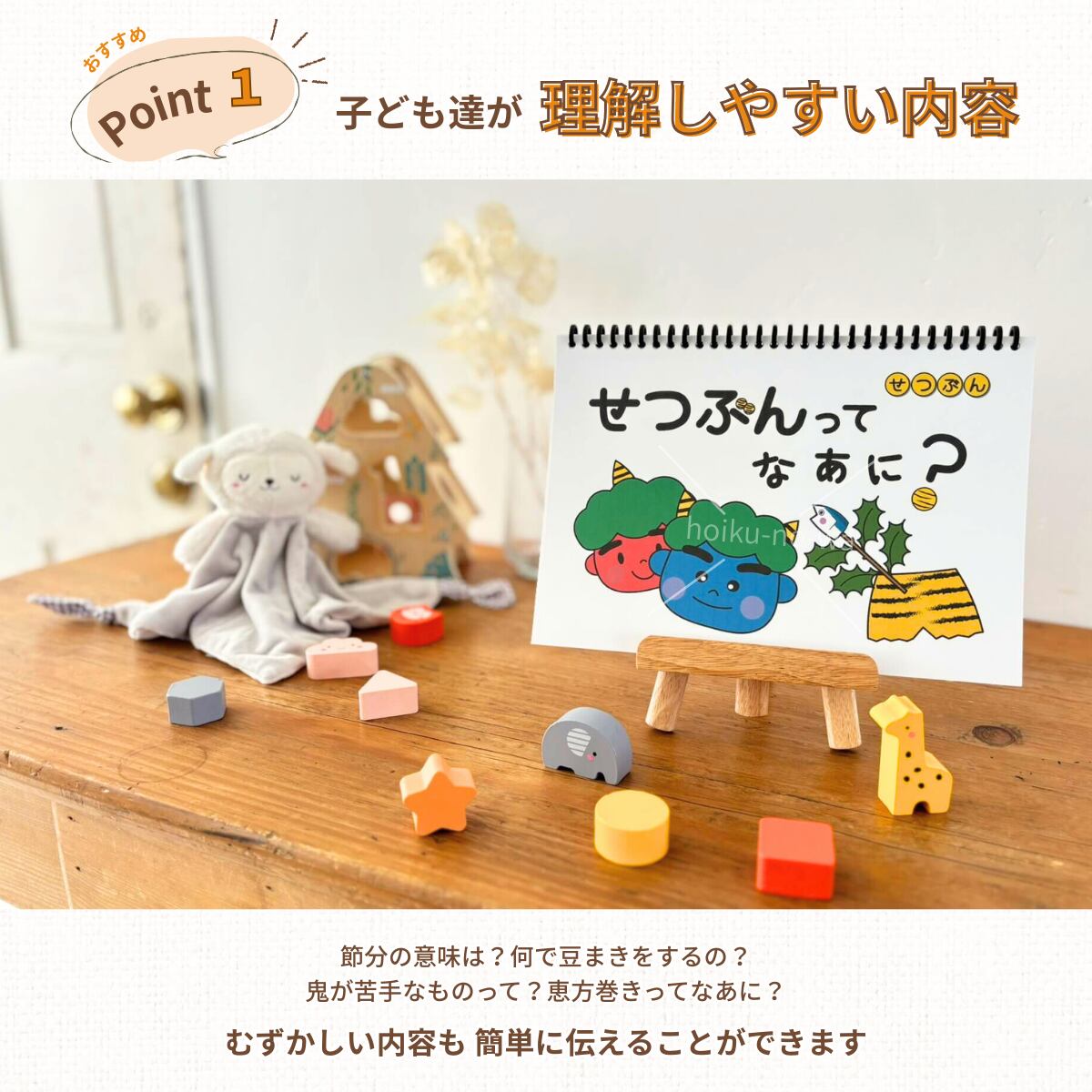簡単に使えるスケッチブックシアターセットで、子どもたちと一緒に楽しく節分のお話を楽しんでくださいね。