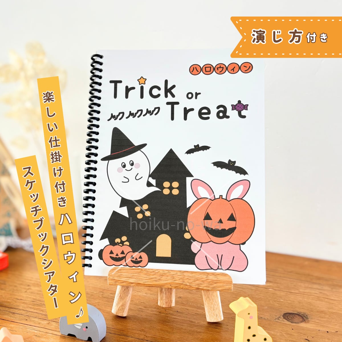 スケッチブックシアター 保育教材 演じ方付き 簡単 1.2.3.4.5歳児 人気 仕掛け 10月 秋 ハロウィン トリックオアトリート 完成品