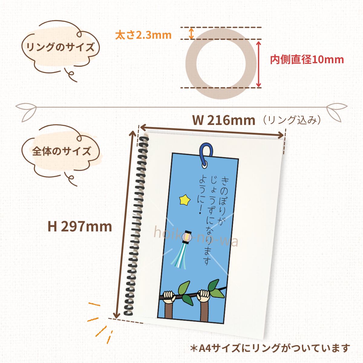 ・A4サイズ/リング付きでめくりやすく、子どもたちに見せやすい仕様。